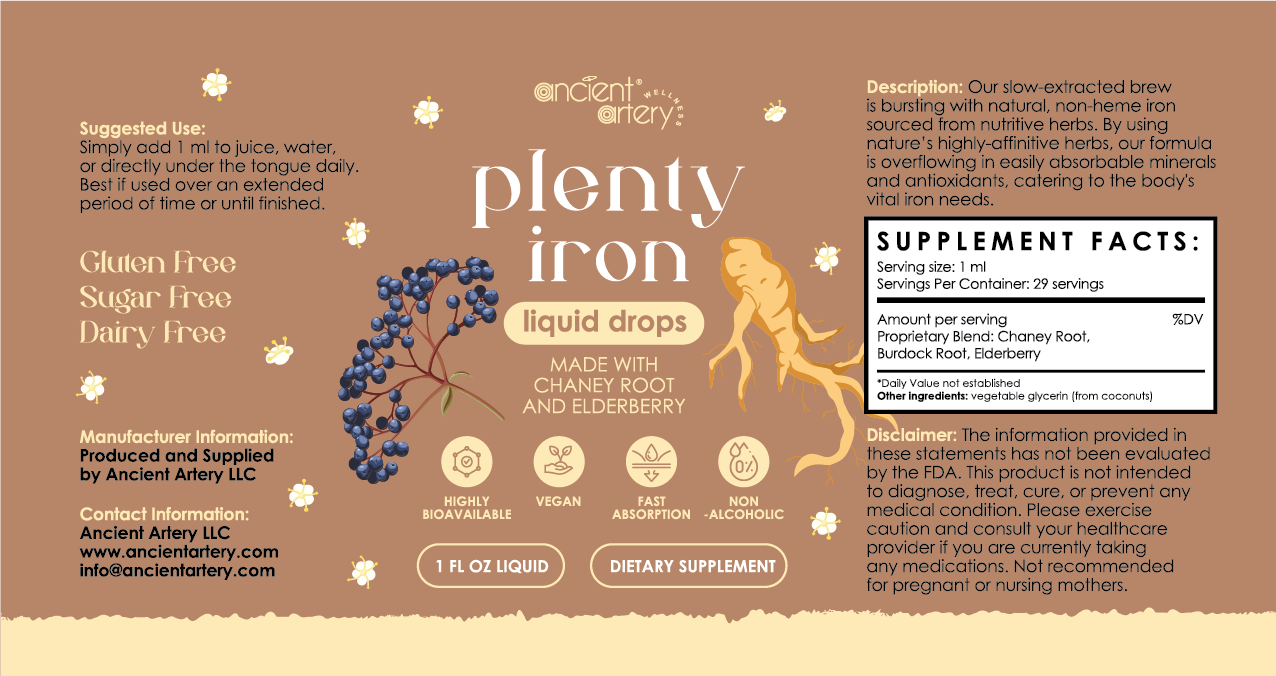 Using herbs such as Elderberry, Chaney Root, and Burdock Root, we carefully slow-extract iron, antioxidants, and supportive minerals from three of nature’s most iron-rich plants. The result is a full-matrix plant formula that provides non-heme iron alongside the natural compounds that help your body utilize it more effectively.